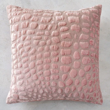 Quilted with shimmery metallic thread in a stylized crocodile pattern, this plush pillow lends lovely texture and glamour to any room.