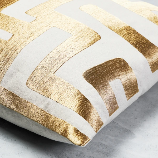 The geometric print of the Mandala Pillow adds a modern flair to the room. Designed by Nikki Chu, this 22″ throw pillow features an embroidered pattern and metallic thread on the front side and is solid on the back. Removable insert is included. A Z Gallerie exclusive, this pillow is available in black or gold.