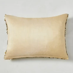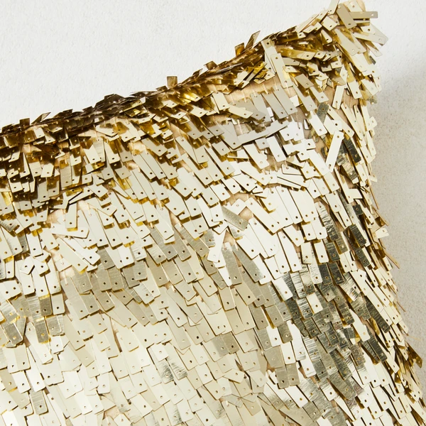 Embellished with shimmering gold sequins, this pillow brings texture and glamour to any room. Solid back. Insert included